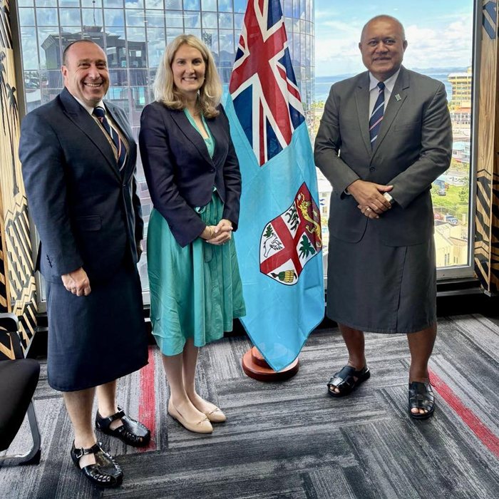 The Minister for Policing and Communications, Hon Ioane Naivalurua met with Australia’s Ambassador for Cyber Affairs and Critical Technology, Jessica Hunter to strengthen bilateral cooperation in digital transformation, cybersecurity and critical technology resilience.