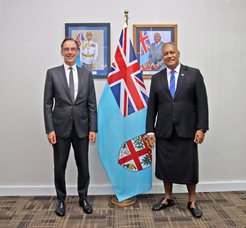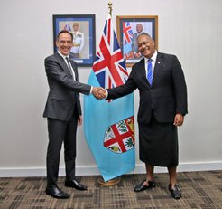 Fiji and New Zealand have today renewed commitment to strengthen bilateral relations and regional collaboration, as the Minister for Foreign Affairs and External Trade Hon. Sakiasi Ditoka welcomed the newly appointed New Zealand High Commissioner to Fiji, His Excellency Greg Andrews.