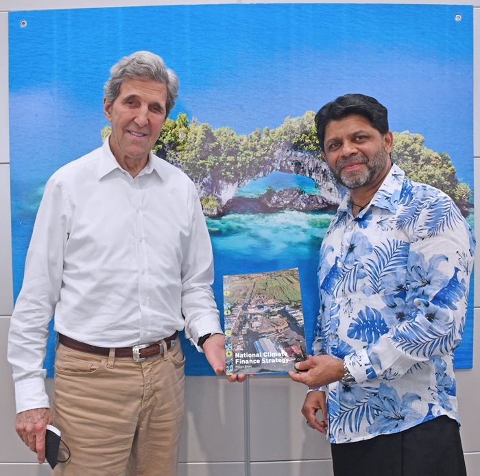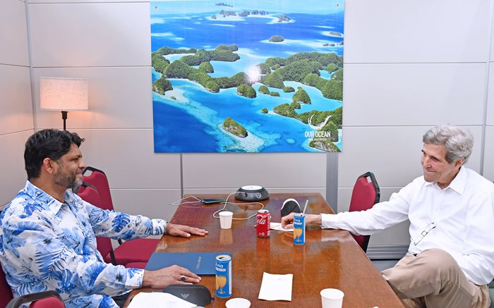 The Attorney-General and Minister responsible for Climate Change, Aiyaz Sayed-Khaiyum, met with the U.S. Special Presidential Envoy for Climate, John Kerry, at the Our Ocean Conference in