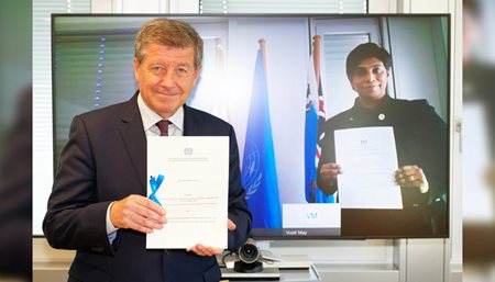 Geneva, Switzerland - Fiji’s Permanent Representative to the United Nations in Geneva, Ambassador Nazhat Shameem Khan yesterday virtually presented to the Director General of the ILO, Mr Guy Ryder, two instruments of Fiji’s ratification of Convention 190 - Violence and Harassment Convention 2019 and Protocol 2002 to the Occupational Safety and Health Convention of 1981.