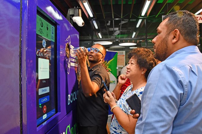 FijiCare Executive Director, Mr Avi Raju, explained that the RVMs use artificial intelligence to detect the type, size and brand of container recycled and separate them into aluminium and plastic bottles. For every plastic bottle or aluminium can deposited into the RVM, digital points will be awarded via a QR code which can be scanned using the BOOLA app and redeemed for prizes like mobile talk-time, free diabetes or hypertension checks, bundled micro-insurance packages or digital gadgets.