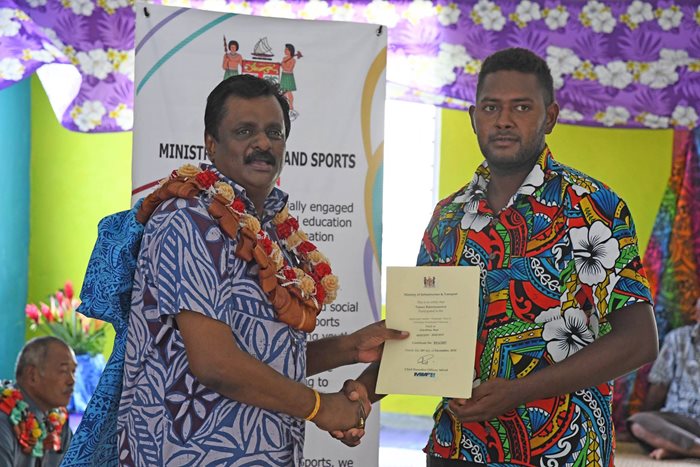 Seventy villagers from Beqa island received boat master and class 6 licensing certification today from the Minister for Employment, Productivity, Industrial Relations and Youth and Sports Hon. Parveen Bala Kumar.