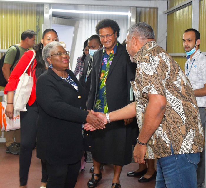 Minister for Commerce, Trade, Tourism and Transport, Faiyaz Koya, received the Director-General of the World Trade Organization, Dr Ngozi Okonjo-Iweala, at the Nadi International Airport today (17/11/22).