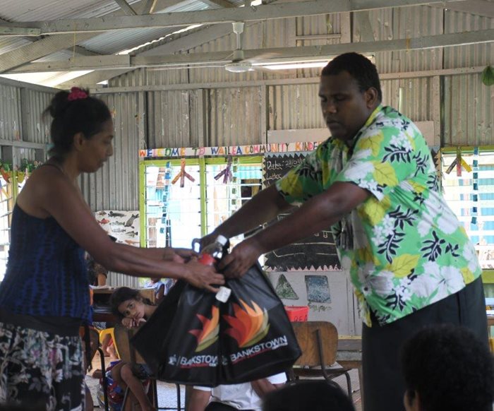 Head of Wailea settlement, Mr George Bukalidi, was pleased to receive the school stationeries.