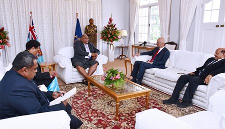 His Excellency, President Ratu Wiliame Maivalili Katonivere, received a courtesy call from the Non-Resident Ambassador of Georgia to Fiji, George Dolidze at the State House today.