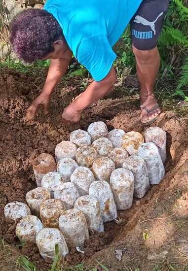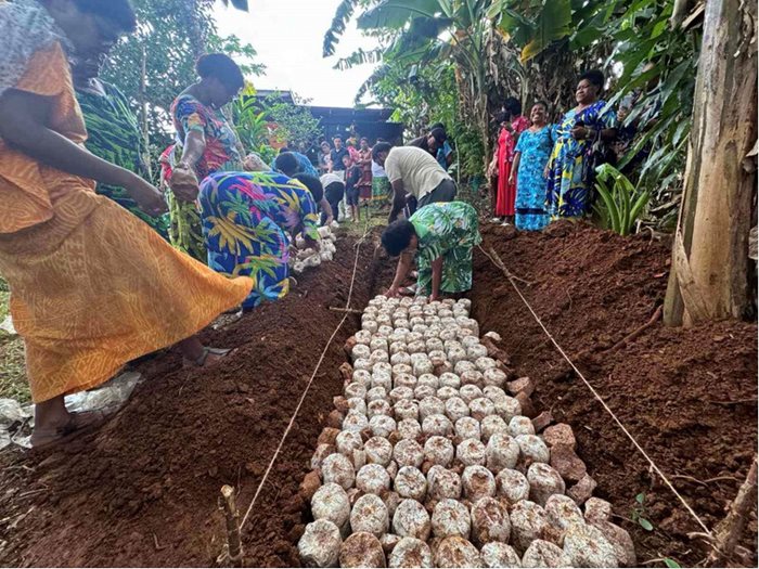 The Makoi Women’s Fellowship Group was eager and interested to explore this initiative as a viable cash crop in backyard gardens. A total of 53 women and 2 men participated in the session and each participant was given 20 mushroom tubers to plant in their backyard. Since the awareness session, a total of 9 tubers were planted to which 270 edible mushrooms (8 kg) were harvested within a week. The tubers can be consistently utilized for a period of three months, after which time it can be ground into soil manure. In addition, 80 tubers were planted that will produce mushrooms that can be used for medicinal purposes and will harvest within three months.