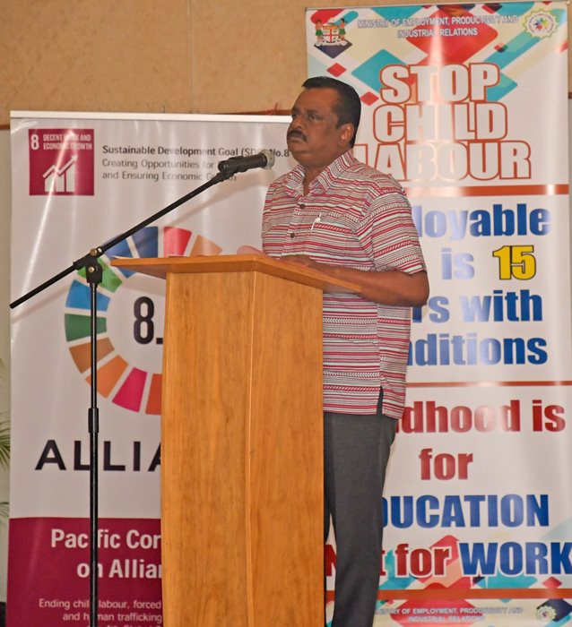 Minister for Employment, Productivity and Industrial Relations, Youth and Sports Hon. Parveen Kumar is calling on stakeholders, non-government organizations and the civil society for a multi-sectoral approach in eliminating child labour, forced labour and modern slavery from our societies.