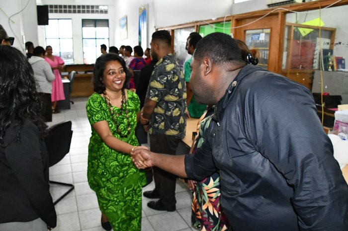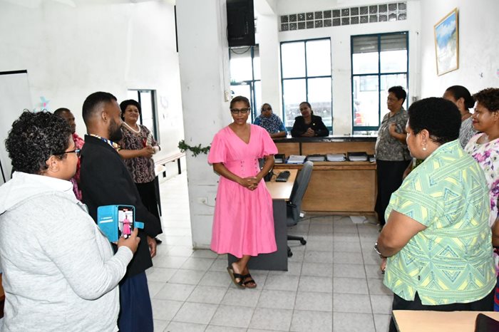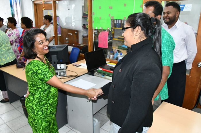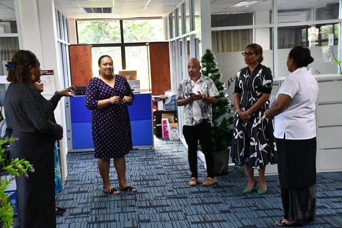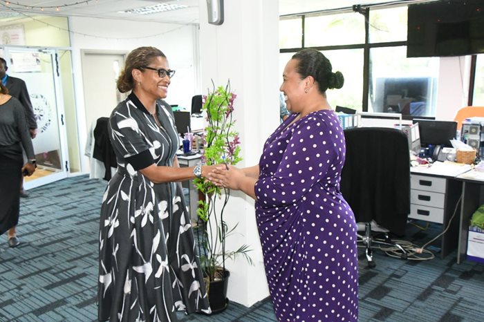 The Minister for Women, Children and Poverty Alleviation, Hon. Lynda Tabuya, and Assistant Minister, Hon. Sashi Kiran received a warm welcome from staff in Suva during their office visitation.