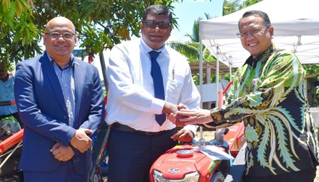 The Minister for Agriculture, Rural and Maritime Development, Waterways and Environment Hon. Dr. Mahendra Reddy received five hand-held tractors from the Government of the Republic of Indonesia yesterday.