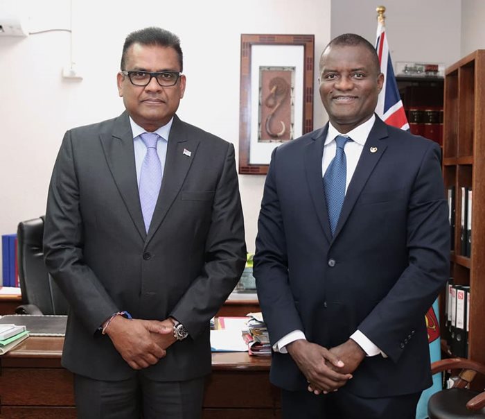 Permanent Secretary for Office of the Prime Minister and Foreign Affairs, Yogesh Karan, received a courtesy call from the World Food Programme’s (WFP) Country Director for the Pacific Multi-Country Office based in Suva, Mr Alpha Bah today (15/08/22).