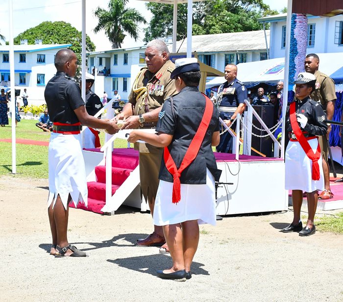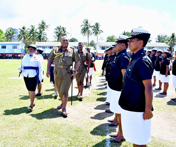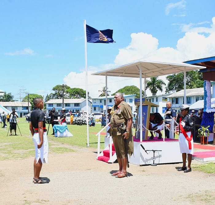 His Excellency, the President, Ratu Wiliame Katonivere addressed 180 police recruits from Batch 64 that have been awarded Level 4 Certificates in Policing at the Nasova grounds on Friday (4/11/22).