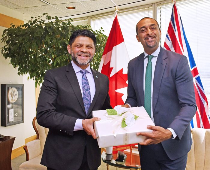 Attorney-General Aiyaz Sayed-Khaiyum met with British Columbia’s Minister of Jobs, Economic Recovery and Innovation, Mr Ravi Kahlon and Minister for Labour, Mr Harry Bains today.